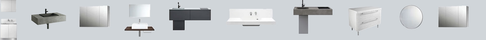 2階入り口には、人気の新商品をメインに展示しているステージが!奥にはカラーやサイズなど多種多様な洗面商品や、バス、建具、タイル等ずらりと展示中!