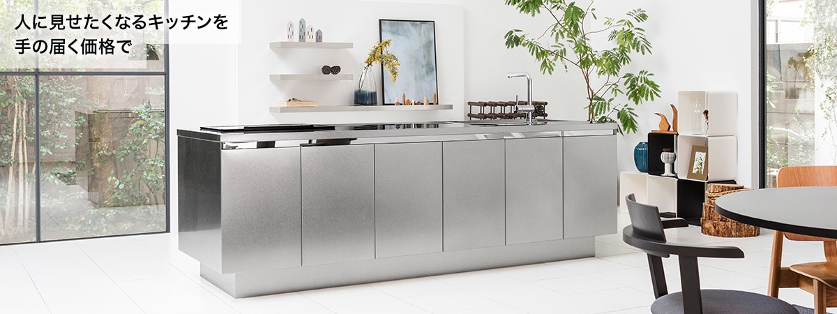 406,000円(税込)からのお手軽価格で、思わず自慢したくなるオールステンレスの美しいキッチンを。