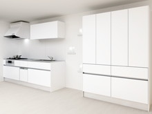 千葉県内にある築35年以上の団地リノベーションに多くの商品をご使用いただきました。キッチンには人気の≪プレーンKミディアム≫を、そして壁には色差が絶妙なスペイン製タイル≪アンティークカラクレーリ≫を施工されています。シンプルなホワイトのキッチンが壁タイルを引き立てており、カフェのようなおしゃれな空間に仕上げられています。