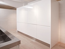 現代建築が持つ機能性に、温かみのあるスローな素材を取り入れた心地良い空間「スローモダンな家」がコンセプト。16畳もある吹き抜けのLDKに《エレバートEX》をはじめ、沢山の商品を採用していただきました。ご夫婦2人でキッチンに立ちたいというご希望から幅2700㎜、奥行1000㎜のワイドサイズをセレクト。天板は傷が目立ちにくく柔らかい表情を生む「バイブレーション仕上げ」に。こだわりのシンクは《エレバート》のハンドメイド角シンクを採用されました。 【お施主様からのコメント】 空間と一体化するデザイン、高い機能性、希望のサイズ、オーダーメイドと比べると圧倒的にリーズナブル。ディテールに関してはセミオーダーを聞いてもらえるという点もエレバートEXを選んだ大きなポイントでした。