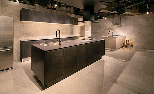 タイルエリアには色温度が変更可能な照明を採用。時間帯による見え方の違いを再現できるようになっています。