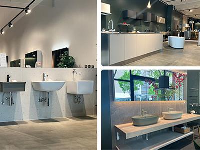 新しいショールームは、人気のシステムキッチンや洗面ボウル、最新アイテムなどをコンパクトに展示いたします。