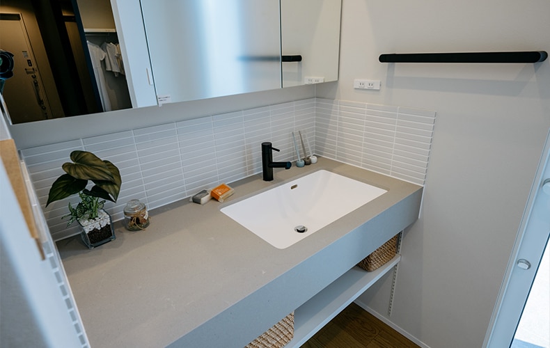 トレンド感と収納力を両立した洗面空間
