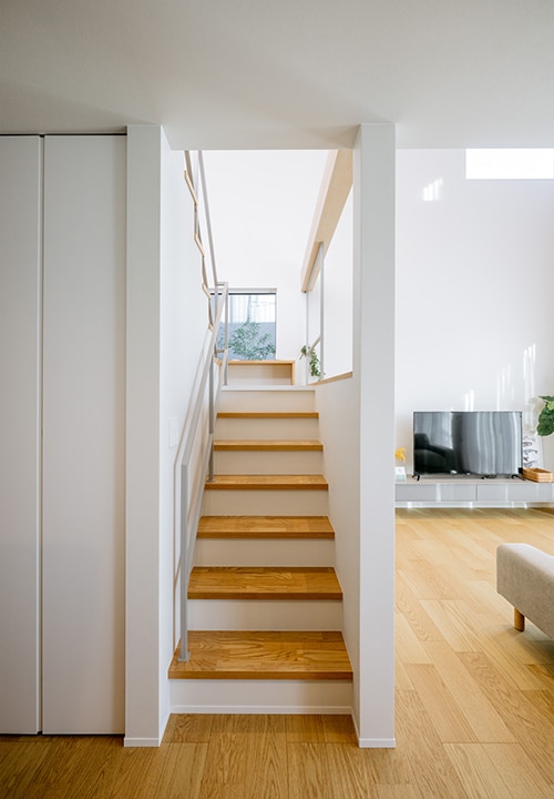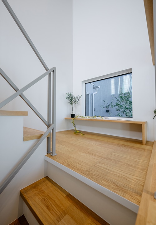 2階へ続く階段の途中にはスキップフロアを設けた