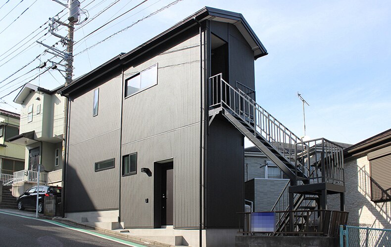 黒を基調とした外壁で落ち着いた雰囲気の賃貸物件