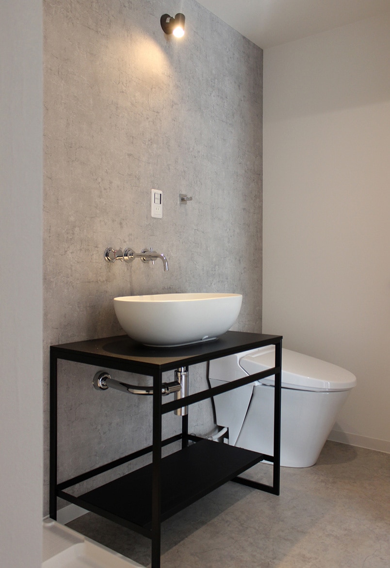また、今回採用した水栓の≪ラベンナ 壁付混合水栓≫や、ルナシリーズの≪ペーパースタンド≫ ≪シングルローブフック≫についても、デザイン面を重視し空間を統一するためにミラタップ(旧サンワカンパニー)さんで選びました。