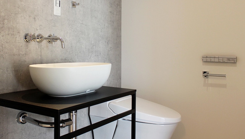壁付け水栓、洗面アクセサリーをミラタップ(旧サンワカンパニー)で統一