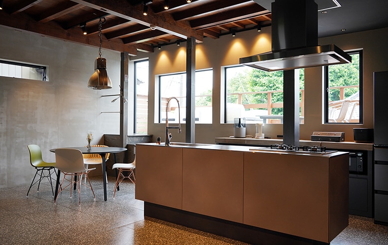 鎌田:とにかく採光と窓の位置、大きさを何度も検討して設計しています。周りが住宅街ということもあるので、宿泊者様や近隣の方の視線が交わらないようにしながらも採光を確保できるように気を付けました。キッチン後ろにはバックカウンターからのウッドデッキを設けているので、窓を開けるとそのまま外に料理の提供ができるよう導線も工夫しています。