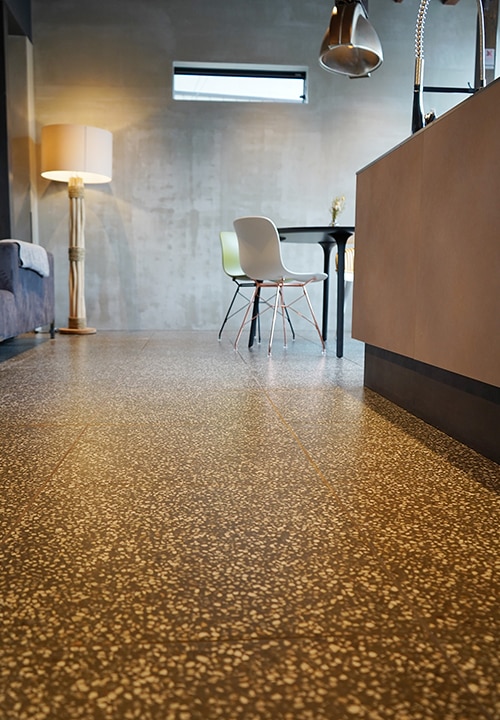 床全面にタイル≪アルトテラ(アントラチーテ)≫ を使用