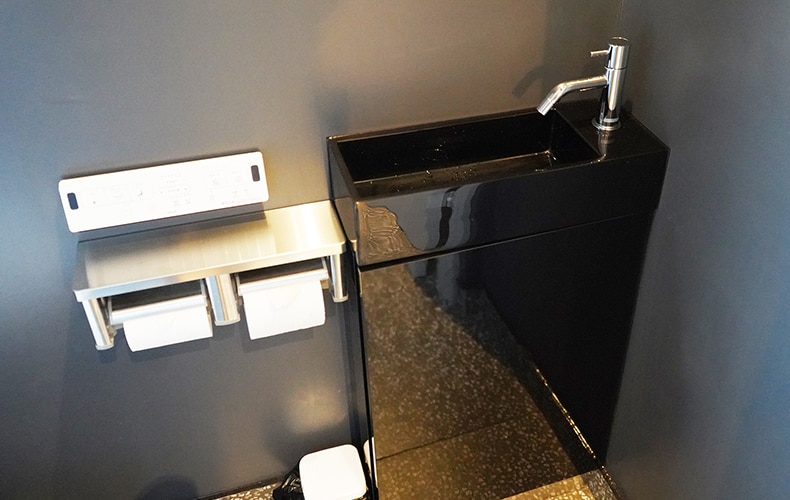 トイレには≪レプト手洗台(ブラック)≫ を使用