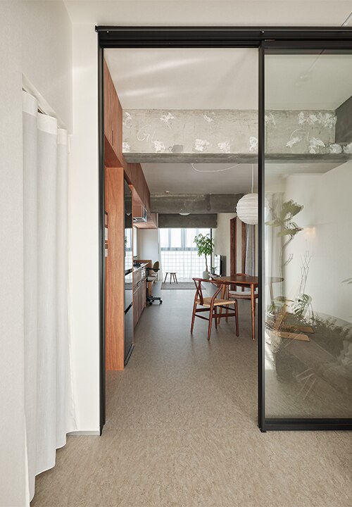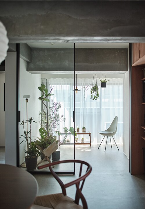 髙橋:この物件は、私たち夫婦と子ども1人がくらすマンションの一室です。角部屋という特徴を活かして、3面からの光を十分に取り入れる空間構成にしました。また、夫婦で育てているたくさんの観葉植物をインテリアに取り込むように工夫しました。