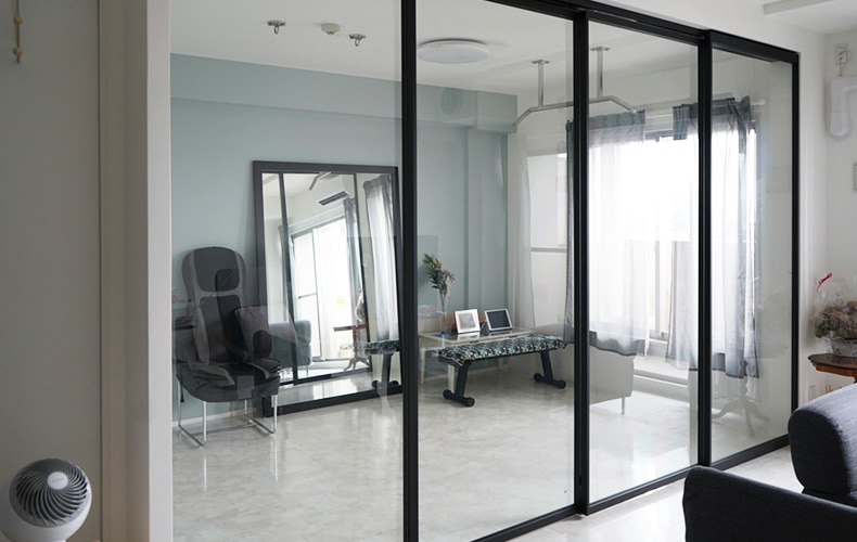 S様:また、家の中で趣味を楽しめるようにしたいと思い、懸垂用のバーとエアリアルヨガ用のフックを設置しました。