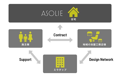 また、デザイン力を高め、差別化を実現しながら“見えないコスト”を減らす工務店様向けのサービス「ASOLIE」の仕組みをご紹介いたします。