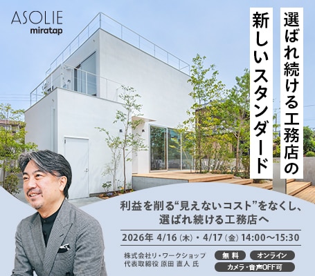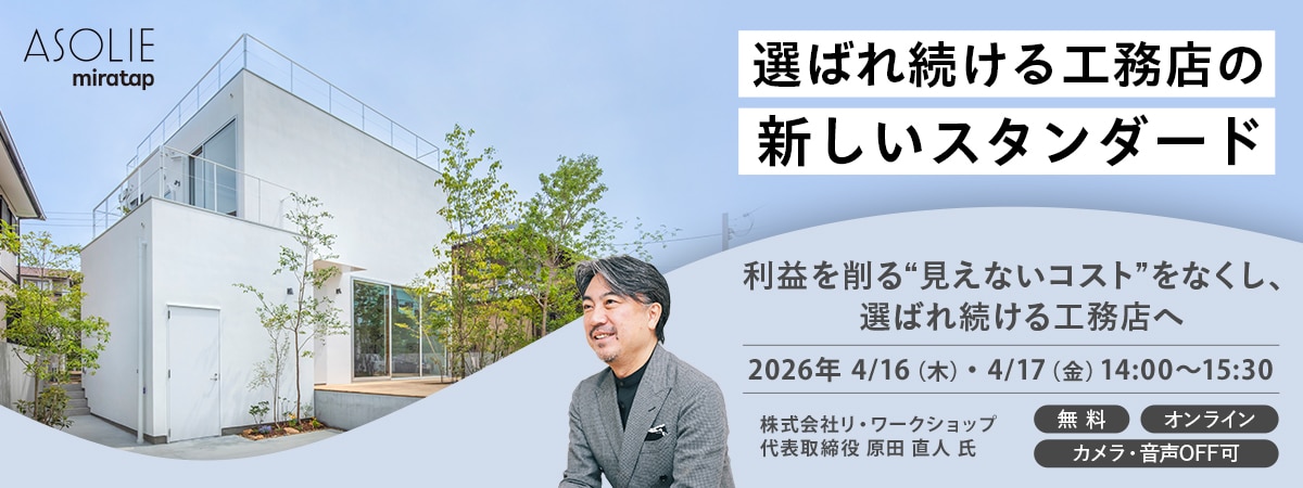 このたび、ミラタップの住宅事業「ASOLIE」では、“工務店様の経営課題解決”をテーマに特別セミナーを開催いたします。