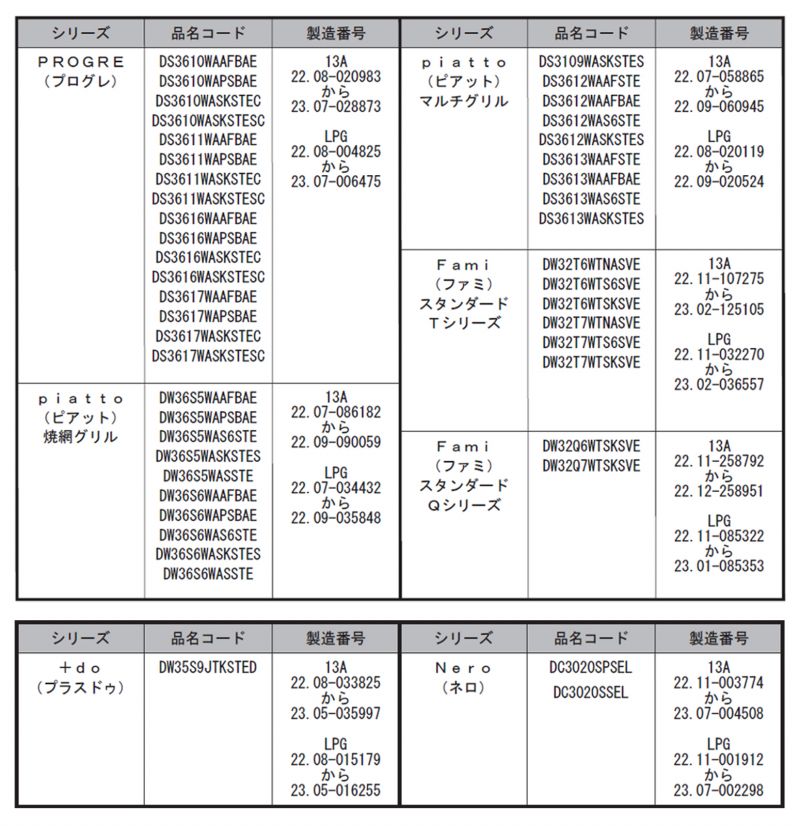 この度、弊社が2022年7月から2023年8月までに販売した、株式会社ハーマン製「ビルトイン ガスコンロ」において特定の製造番号の一部にて電池消耗が早くなることが判明しました。電池の消耗が早くなるということ以外の影響はなく、機器の各運転機能や安全性につきましては問題ございません。