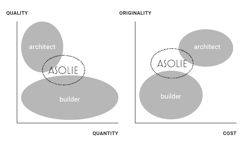 そのため、建築家に依頼するための費用を軽減し、建築家の工数の制限を緩和することができるため、品質、提供住宅戸数、オリジナリティ、コストなど、建築家に依頼するデメリットを排除しながら、デザイン性の高い住宅を実現することができます。
