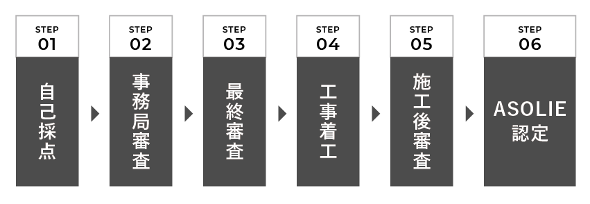 自己採点を行っていただいた後、ASOLIE事務局とコミュニケーションをとりながら、アドバイザリーをしつつ、事務局審査を行います。
