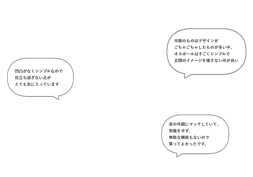 苗字などに合わせ、アルファベットを3~11文字の範囲で自由に選び、WEBで簡単にオーダー。オスポールシリーズとのバランスを追求したサイズなので、取り付ければ門柱と表札が一体化し、美しく仕上がります。