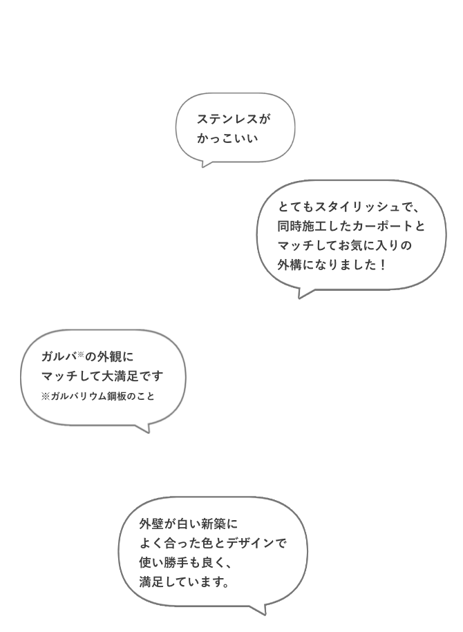 ポスト機能なしのものや宅配ボックス機能を持ったものまで、豊富なバリエーションで自分好みの外構に仕上げられます。
