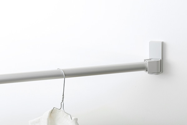 物干アームの角度変更が可能で、窓枠や壁面などへ納まりに応じて柔軟な取付が可能な《室内物干金物》。使用しない時は物干アームを本体へ収納でき、目立たずスマートな印象を与えます。