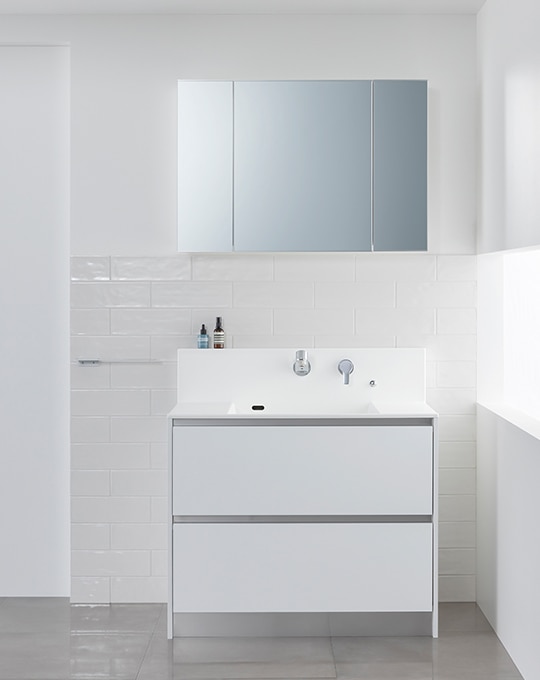 顔を洗い、身だしなみを整える。洗面所から1日が始まります。毎日のスタートをよりよいものにするために、スタイリッシュな洗面スペースは欠かせません。ここでは当社の商品を使った洗面まわりのコーディネートプランと、コーディネートする際におすすめの商品を一部ご紹介いたします。ぜひ洗面スペースのコーディネートの参考にしてください。