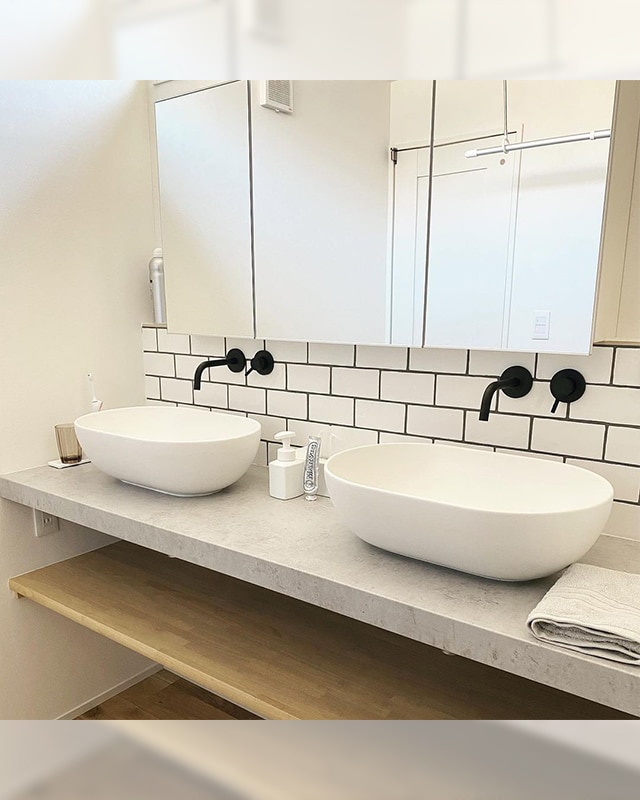 スタイリッシュなグレーの洗面ボウルで楽しむモノトーンのコーディネート