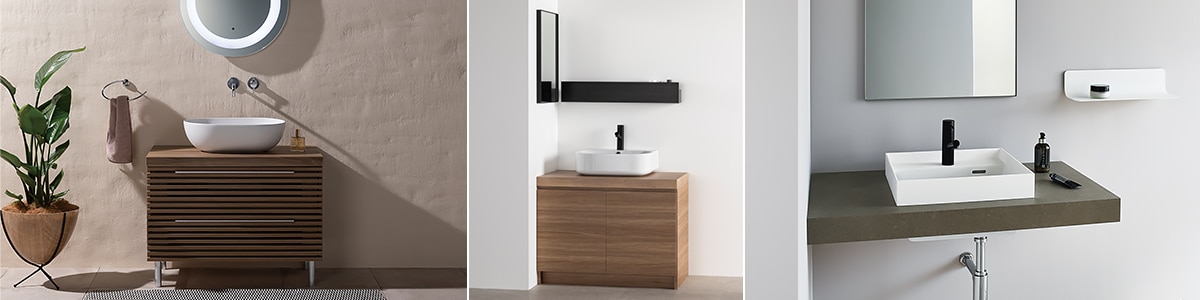 置き型や壁付け型など、たくさんの種類があります。理想の洗面ボウルを見つけてください。