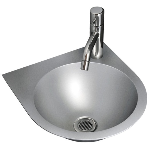 トイレなど、狭小スペース向きに設計されたステンレス製手洗器です。素材は強くてお手入れのしやすいSUS304オールステンレス製です。商業施設など不特定多数が使用する過酷な条件にも対応。