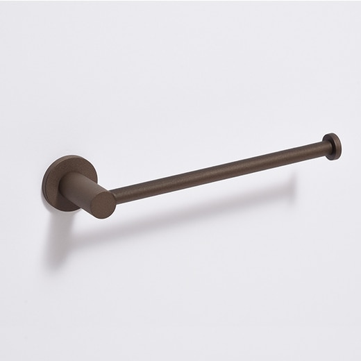 シンプルで細く丸いフォルムはどのような空間にも調和し、トレンドカラーのマットなブロンズは上品かつアクセントになるデザインです。これまでにないカラーバスアクセサリーでアールミラーと合わせて、新しい水まわり空間を創造してください。
