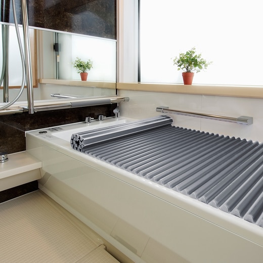 溝の奥まで洗いやすいウェーブフォルムに、純銀のチカラ「ミューファン(R)・パウダー」による銀イオンが細菌の増殖を抑制しイヤなヌメリを防ぎます。お手入れのしやすさを追求した主婦の味方の風呂フタです。
