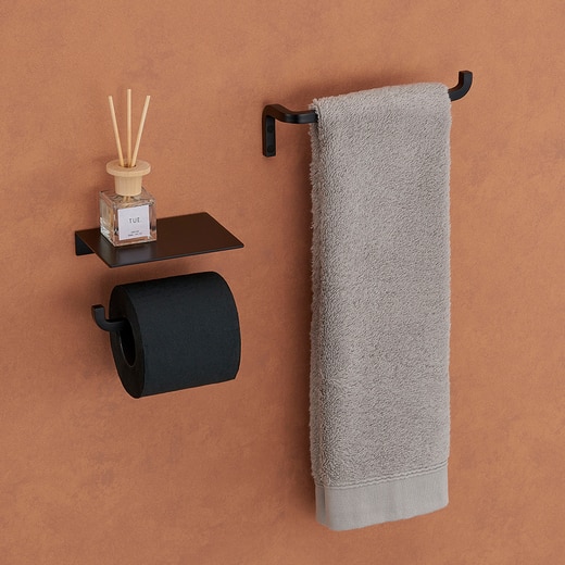 - ・材質:アルミ ・仕上げ:焼付塗装 ・カラー:ブラック ※水回り(キッチン・洗面・トイレ)でもお使いいただけますが、浴室内など常に水のかかるような場所への設置は避けてください。 ※石膏ボードや合板の壁面に取り付ける場合は、下地があり、ねじがよく効く場所に取り付けてください。下地が無い場合は、必ず補強してから取り付けてください。 コンクリート壁に取り付ける場合は、別途、市販のコンクリート壁用アンカーをご準備ください。 ※インパクトドライバーは使用しないでください。締め付けすぎや破損の原因となります。