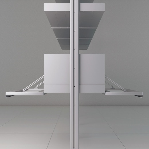 デザインシェルフ≪ミスター・デリカート≫用のアルミキャビネットです。両側から扉を開くことが出来るので、間仕切り収納におすすめ。アルミポールに棚やボックスを自由に組み合わせて、美しく便利な収納をデザインしてください。