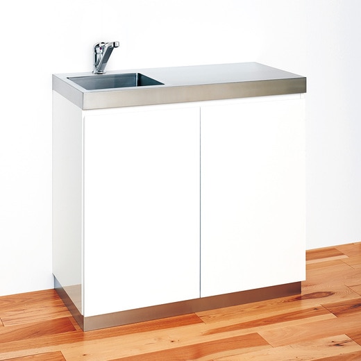 - ●仕様 天板:ステンレス(SUS304) 巾木:ステンレス(SUS430)No.4 シンク:ステンレス(SUS304) シンク内寸法:W300×D300×H180mm 扉:メラミン化粧板仕上げ 側板:ポリエステル合板 ※扉が静かに閉まるソフトクローズ付 ※水栓、加熱機器、レンジフードは別売りです。 ※天板と本体は一体でお届けとなります。搬入経路の確認をお願いします。