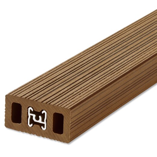 ランネルウッドに補強タイプが新登場です。たわみを防止するために中空部にアルミ補強棒をいれました。1mピッチまで固定金物の間隔をあけることができますのでコストも見た目もスッキリ。