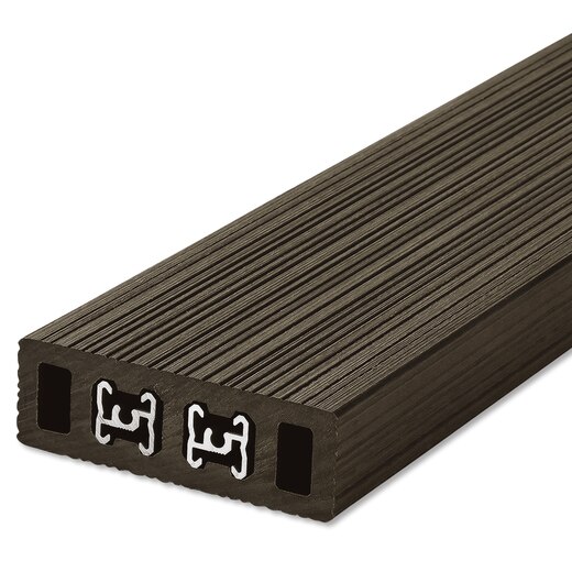 - 受注生産品 ※50本以上のご注文は上記の納期で対応できない場合があります。お早めにお問い合わせください。 ●材質:プラスチック+木粉成分 ●成分:プラスチック50%、木粉40%、顔料・紫外線劣化防止等の機能添加剤:10% ●仕様: 4面粗仕上リブ加工。切り口以外の4面は同じ仕上げです。 ※木粉が含まれているため、天然木同様雨水によりアクが染み出し周辺に付着する場合があり、施工場所には十分注意が必要です。 ※2階以上の雨がかりに素通しで施工される場合は、1階の床・壁・自動車・洗濯物にアクの染み出しが付着する可能性がありますので、設計には十分ご配慮ください。 ※デッキの施工時は必ずクリアランスと固定ピッチを守ってください。割れや反りの原因となります。 ※人工木デッキ材は温度による伸び縮みがあります。躯体・柱間隔は、芯1000mm以下(横ルーバー)、芯1500mm以下(縦ルーバー)でしっかり固定してください。 ※寸法精度±2mm ※本製品はランネルウッドと違い中空部にアルミ補強棒が入っています。カット方法は施工説明書をご覧ください。 ※アルミ補強棒は中間部のビスで固定されている為、長尺をカットして短くすることはできません。 必要な長さに一番近い長さをオーダーしてください。 ※固定金物は付属しておりません。