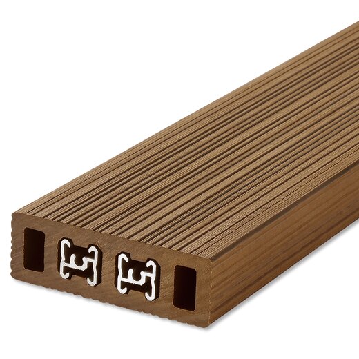 - 受注生産品 ※50本以上のご注文は上記の納期で対応できない場合があります。お早めにお問い合わせください。 ●材質:プラスチック+木粉成分 ●成分:プラスチック50%、木粉40%、顔料・紫外線劣化防止等の機能添加剤:10% ●仕様: 4面粗仕上リブ加工。切り口以外の4面は同じ仕上げです。 ※木粉が含まれているため、天然木同様雨水によりアクが染み出し周辺に付着する場合があり、施工場所には十分注意が必要です。 ※2階以上の雨がかりに素通しで施工される場合は、1階の床・壁・自動車・洗濯物にアクの染み出しが付着する可能性がありますので、設計には十分ご配慮ください。 ※デッキの施工時は必ずクリアランスと固定ピッチを守ってください。割れや反りの原因となります。 ※人工木デッキ材は温度による伸び縮みがあります。躯体・柱間隔は、芯1000mm以下(横ルーバー)、芯1500mm以下(縦ルーバー)でしっかり固定してください。 ※寸法精度±2mm ※本製品はランネルウッドと違い中空部にアルミ補強棒が入っています。カット方法は施工説明書をご覧ください。 ※アルミ補強棒は中間部のビスで固定されている為、長尺をカットして短くすることはできません。 必要な長さに一番近い長さをオーダーしてください。 ※固定金物は付属しておりません。