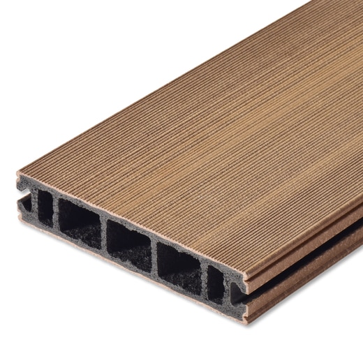 仕様:両面粗仕上リブ加工 中空構造 表裏面が同じ仕上げです。 小口にはワイドQCS用の溝加工がされております。 成分 プラスチック:75% 木:20% 添加剤:5% ※人工木デッキ材は温度による伸び縮みがありますので、必ず施工方法をご確認ください。 ※木粉が含まれているため、天然木同様、雨水によりアクが染み出し周辺に付着する場合があり、施工場所には十分注意が必要です。 ※2階以上の雨がかりに素通しで施工される場合は、1階の床・壁・自動車・洗濯物にアクの染み出しが付着する可能性がありますので、設計には十分ご配慮ください。 ※伸縮を考慮し定尺(呼び寸)より若干長め(2015~2030mm)にラフカットした状態で納品されます。施工前に直角にカットした上で寸法取りしてください。 ※デッキの施工時は必ずクリアランスと固定ピッチを守ってください。割れや反りの原因となります。 ※主原料にリサイクルの木粉とプラスチックを使用している為、色の濃淡のバラつきがごさいます。あらかじめご了承ください。(対象:デッキ・幕板・サンプル)