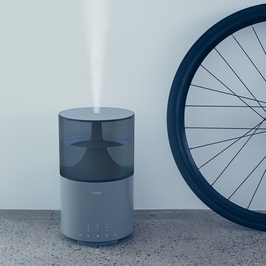 床だけでなく棚やテーブルにも置くことができるコンパクトデザインながら、cado史上最大の約3.5Lの大容量タンクで給水や手入れのしやすさにもこだわった使い勝手の良い加湿器です。LED 照明としての機能も搭載しているため、書斎やベッドサイドなどで間接照明やデスクライトとしてもお使いいただけます。