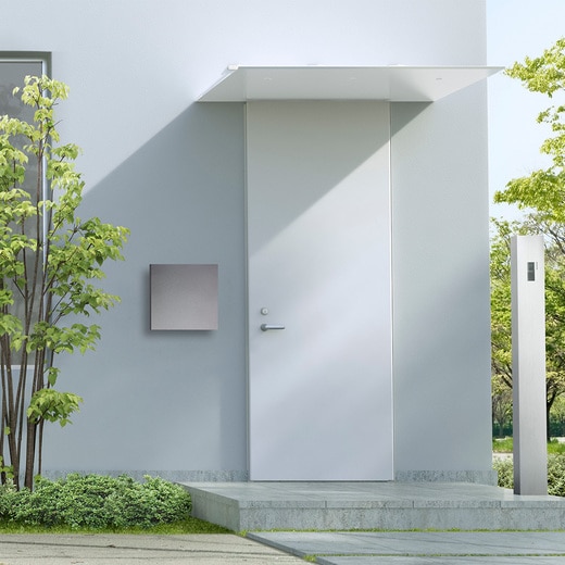 錠や投函口などは一切見せない納まりとすることで、正方形の1枚板のみが浮かび上がるシンプルなデザイン。様々なファサードに対して自然に溶け込む、心地よい存在感。モダンなカラー展開で、玄関をよりスタイリッシュに演出することができます。