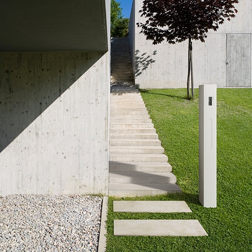 様々な住宅ファサードと調和するホワイトカラーを、品のあるマットな質感で仕上げました。ある時は存在感をもった主張する白に、住まいの顔として住む人の個性を印象づけます。