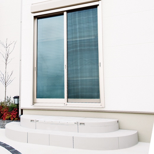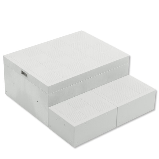 ハウスステップRタイプの箱型。ライトグレー色。※収納庫と、取手は付属していません。※収納庫と取手はオプションで別途購入することが可能です。