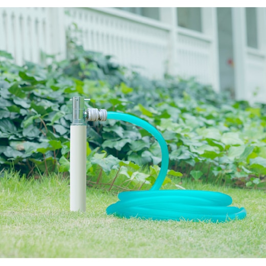 吐水口が360°可動する、散水専用の短い水栓柱です。ホース取付の際は、ワンタッチで接続できる金属製ジョイント(EX15119)をご利用ください。