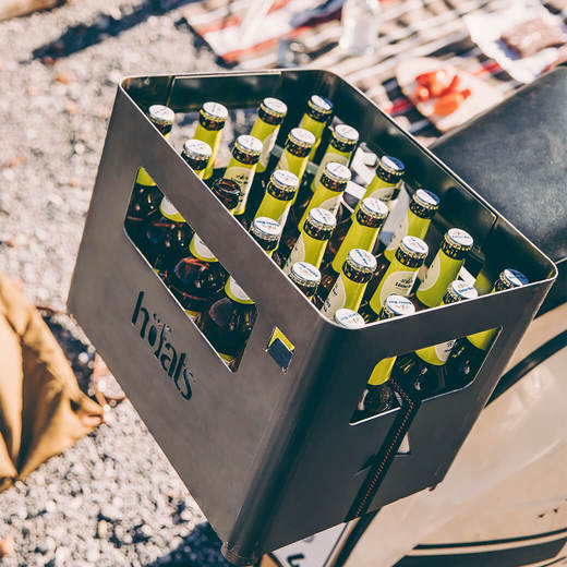 BEER BOX Fire basketは、栓抜きが付いたおしゃれなデザインのビールケースです。アウトドアシーンではファイヤーピットとして使用できます。