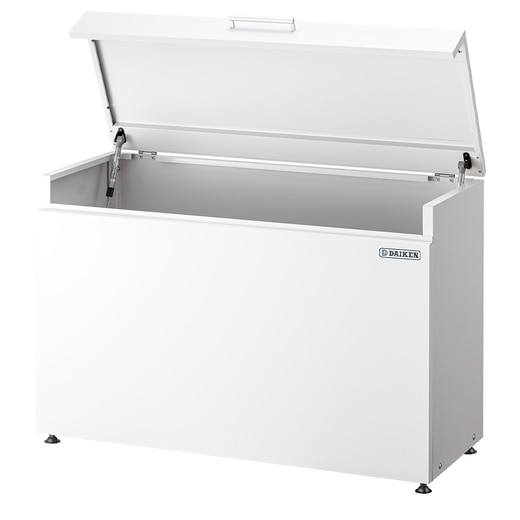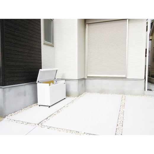 家庭ごみの仮保管や荷物の保管、小物入れに最適なクリーンストッカー。奥行400mmのコンパクト設計で容量200L(45Lゴミ袋:約4袋)の収納量。安全性配慮のガスダンパーを搭載し、30mmの高さ調整可能なアジャスター付きで傾斜地でも設置可能。底板に水抜き穴もありホースで水を流して簡単にお掃除もできます。