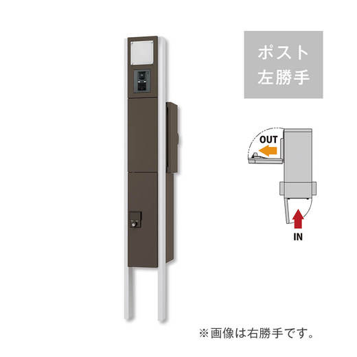 - ※10台以上ご注文の場合は納期ご確認ください 。 ●インターホン取付仕様 ●LED照明:有り ●郵便ポスト扉勝手 左勝手 ●宅配ボックス扉勝手 右勝手 ●カラー グレーブラック RALカラー品番/RAL7022 ●セット内容 門柱ユニット(ネームシール付属、インターホン取付可能) 郵便ポスト(最大受取可能サイズH32cm×W3.5cm×D35cm) 宅配ボックス(最大受取可能サイズH44cm×W13cm×D33cm) ※4梱包でのお届けです。 ●材質 支柱:アルミニウム(仕上:アルマイト処理、クリア塗装) 名札パネル:高純度フェライト、ステンレスt=0.8mm(仕上:粉体塗装) 表札プレート:アクリル ●特長 シート切り抜き文字付属 印鑑ケース付き(印鑑はお客様自身でご用意ください。) 郵便ポスト部は開錠・施錠のスムーズさを追求した専用大型ダイヤル錠 宅配ボックス部は電気不要のメカ式のプッシュボタン錠前 ※郵便ポストは投入・取出方向の左右勝手が選択可能ですが、宅配ボックスは前入前出(右勝手)のみとなります。 ※インターホン子機は付属しておりません。使用可能なインターホン子機の目安は、寸法がインターホンを取り付けるステーの内寸(幅107mm×高さ137mm)より小さい物をお選びください。 ※雨水が浸入しても郵便物が濡れにくい構造を採用しておりますが、防水構造ではありませんので、強風雨や諸条件によっては郵便物が濡れることがあります。 ※掲載の写真は、実物と色が違う場合がございます。