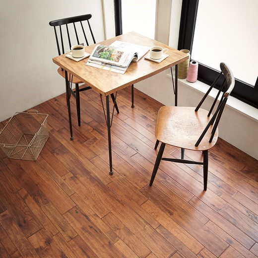 3つの異なる幅の組み合わせと表面のダメージ加工で何年も使い込んだようなヴィンテージ感があり、使い方次第でミッドセンチュリーやフレンチ、カフェスタイルなど異なった空間を演出します。