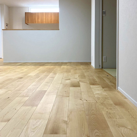 SIAA基準の抗ウイルス・抗菌 UV塗装仕様の、120mm幅の幅広無垢フローリングです。