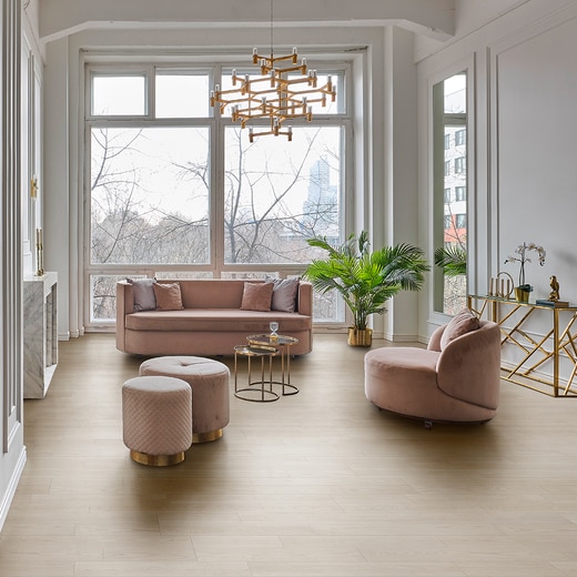 SIAA 抗菌・抗ウイルス仕様/良質な銘木から、様々な節や模様を厳選した突板フローリング。触り心地の良いつや消し塗装で、見た目だけでなく触感も楽しんでいただけます。 表面にはトレンドを押さえた淡くやさしい色合いの着色を施しています。天然木の豊かな表情と相まって、柔らかく落ち着いた雰囲気が空間全体に広がります。