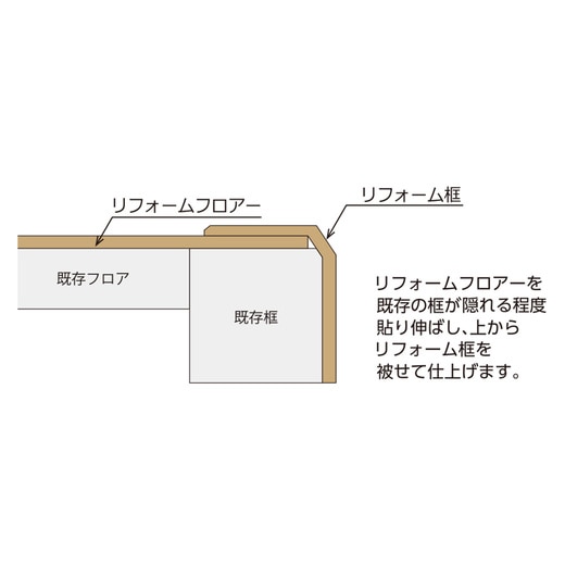 リフォームフロアー用の框部材。既存の框の上から被せて仕上げます。