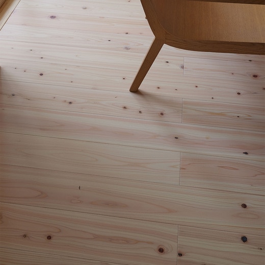 備北地域をはじめとした、日本で育った桧をつかった無垢の床材です。3つの商品グレード(無節・上小節・節あり)と2種の仕上げ(無塗装・クリアホワイト)をご用意しております。